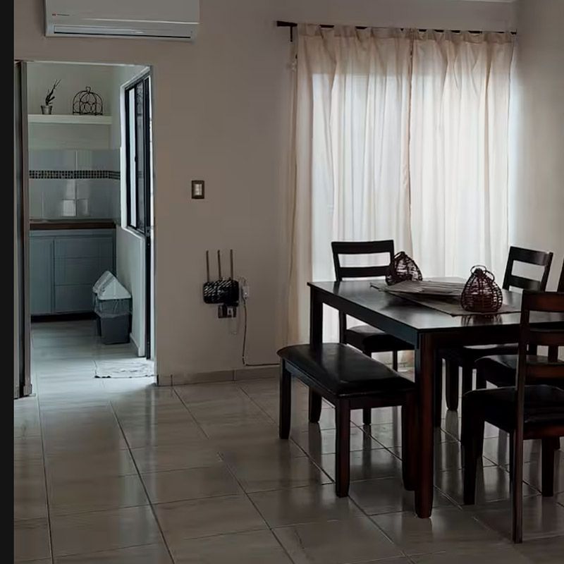 - La casa cuenta con aire acondicionado en las tres recámaras y en la sala, WiFi, televisión en sala y en recámara principal, cocina equipada con estufa, refrigerador, microondas, cafetera, licuadora, platos, vasos, tazas, cubiertos, lavatrastes, comedor para 6 personas. En el patio contamos con lavadora y calentador.